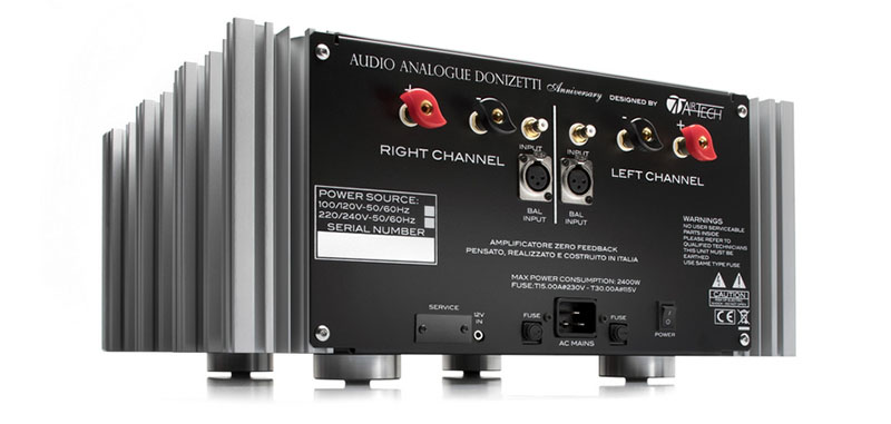 Donizetti er en effektforstærker designet til at være stærk nok til at drive en hvilken som helst højttaler uproblematisk. Effekten er på mindst 2 x 250 watt i 8 ohm og der dobles ved 4 ohm til 500 watt.