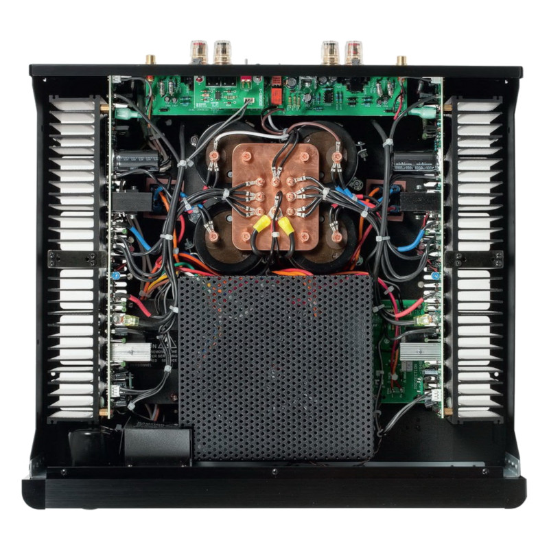 Rotel’s næst-største effektforstærker leverer 2x200 watt/8 ohm, og har rigeligt med overskud til at drive de fleste højttalere problemfrit.