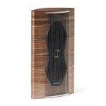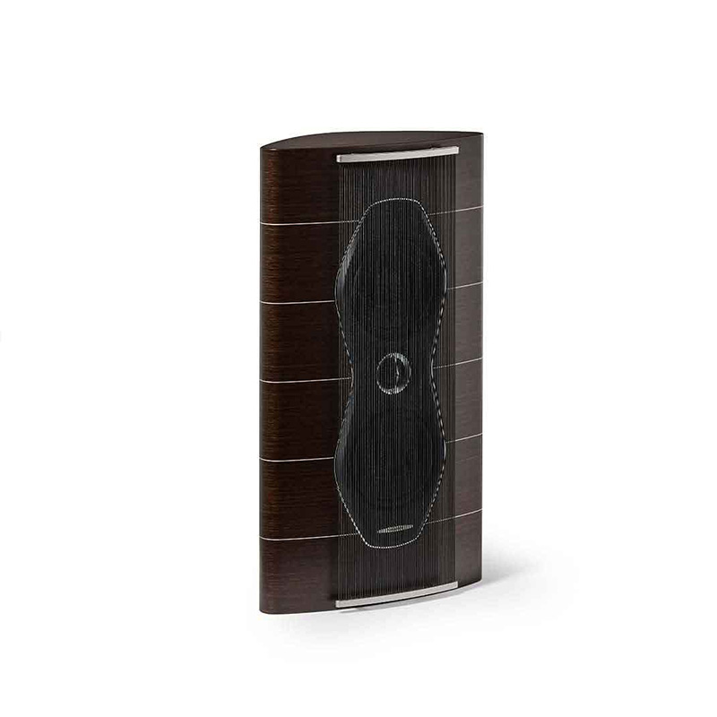 De smukke, buede kabinetter med finish i valnød eller wenge-træ er håndlavede og lakerede 7 gange inden de poleres nænsomt til det silkematte look, som det endelige produkt får. De smalle indlægsstriber af egetræ understreger bare kunsten i det endelige touch.