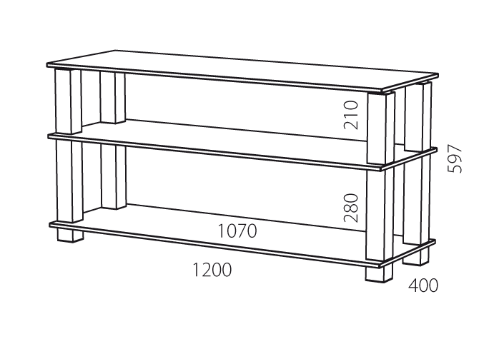 Solidt og flot High-End møbel med 3 hylder og aluminiumsstolper - der kan tilkøbes kabelkanal til montering på bagsiden.