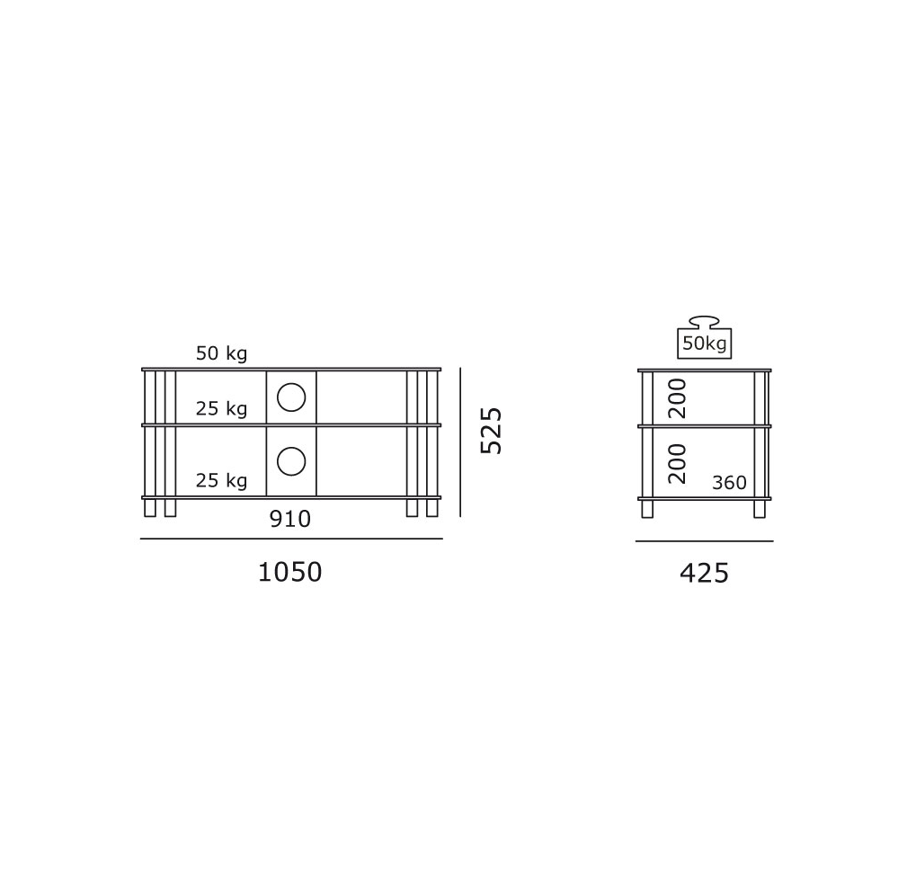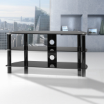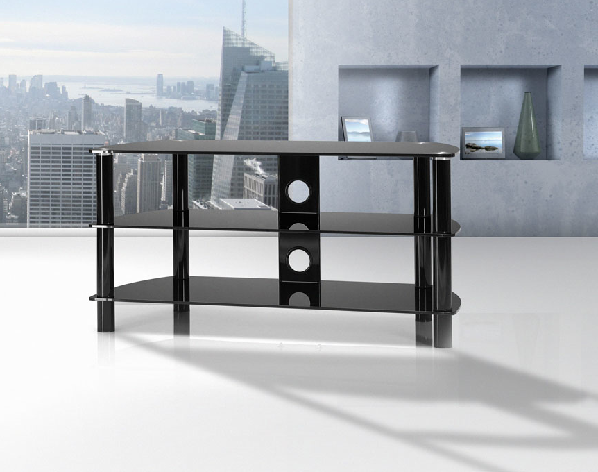 Ridsefrit sort glas og kabelbakke på bagsiden til at skjule kablerne bag.