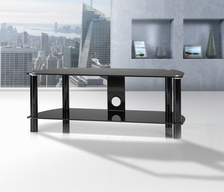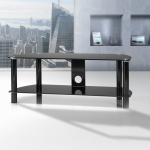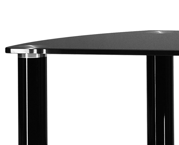 Ridsefrit sort glas og kabelbakke på bagsiden til at skjule kablerne bag.