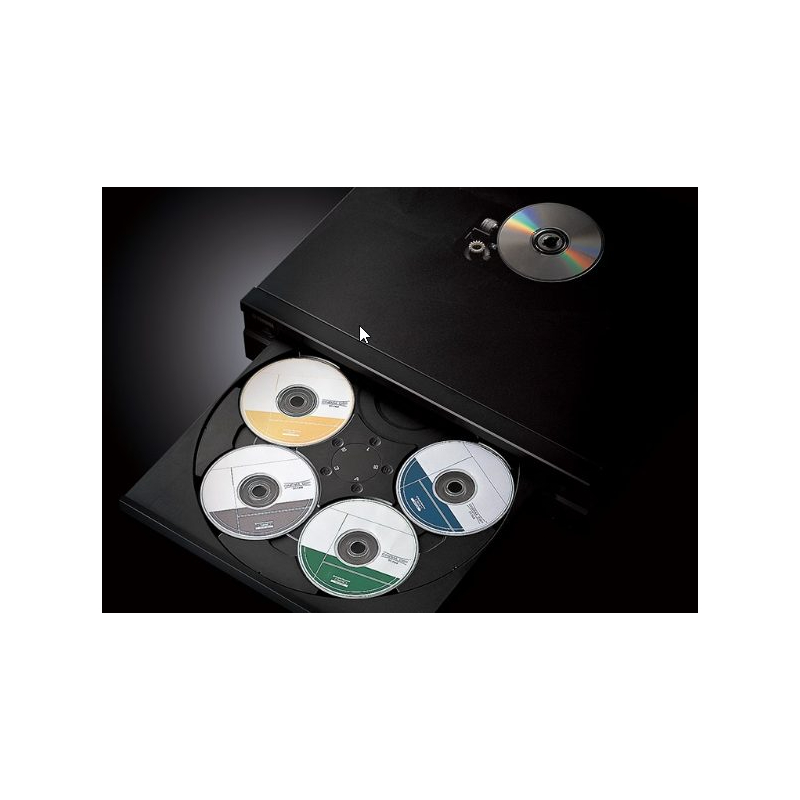 - Skuffe med fuld åbning til skift af 5 discs ad gangen